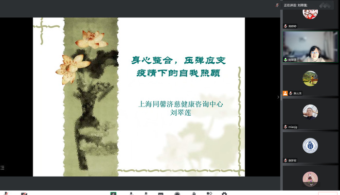 为提升教职工心理健康意识和自我调适能力,营造更好的家庭、校园和社会氛围1117日,中德工程学院邀请亚洲家庭治疗学会院士会员、上海高校心理咨询协会督导师刘翠莲老师,为全院教师题为“身心整合,压弹应变:疫情下的自我关爱”的讲座,帮助教师认识和梳理工作和生活中的压力并提供了专业建议。
