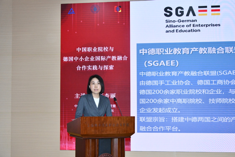 中德职业教育产教融合联盟中方理事会常务副秘书长李杏丽在《中国职业院校与德国中小企业国际产教融合合作实践与探索》中,首先介绍了中德职业教育产教融合联盟(SGAEE)情况、“中德工业4.0智能制造实训基地”试点示范项目、职教联盟云学院与上海电子信息职业技术学院合作成果。