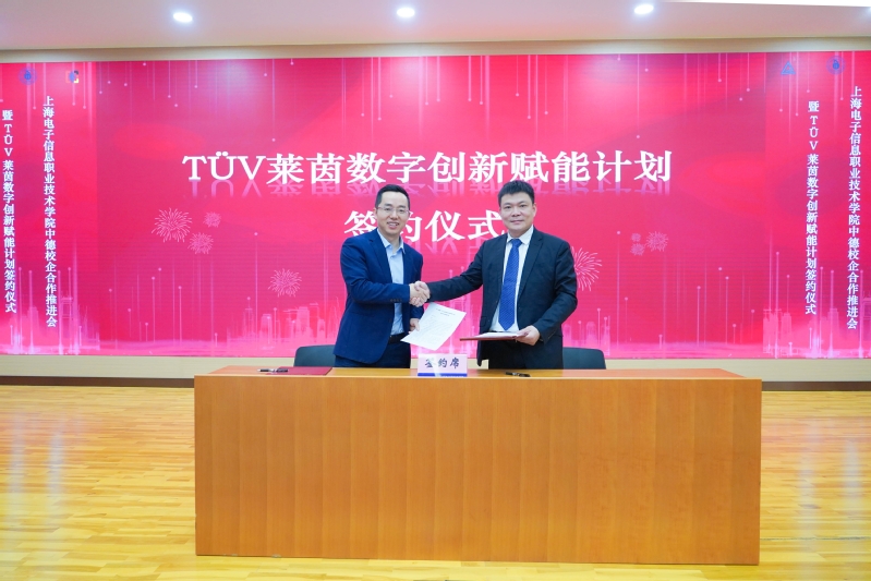 仪式上,上海电子信息职业技术学院院长赵坚与莱茵技术监护(深圳)有限公司总经理陈俊东共同签署了《关于实施“TÜV莱茵数字创新赋能计划”的合作谅解备忘录》。