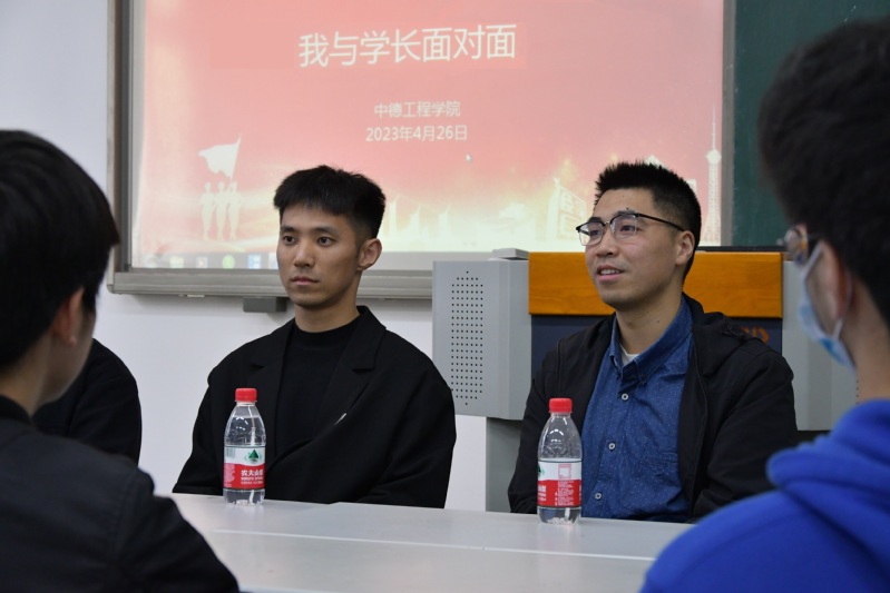 借此机会,中德工程学院举办了“共话青春、同谋发展”——我与校友面对面系列活动,10余名优秀校友与50余名中德工程学院学生代表共聚一堂,面对面畅聊彼此的成长经历并展望未来。此次活动围绕“铸军魂、促就业、话升学”三个系列开展。