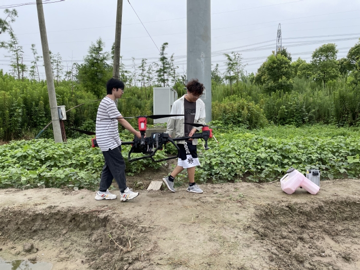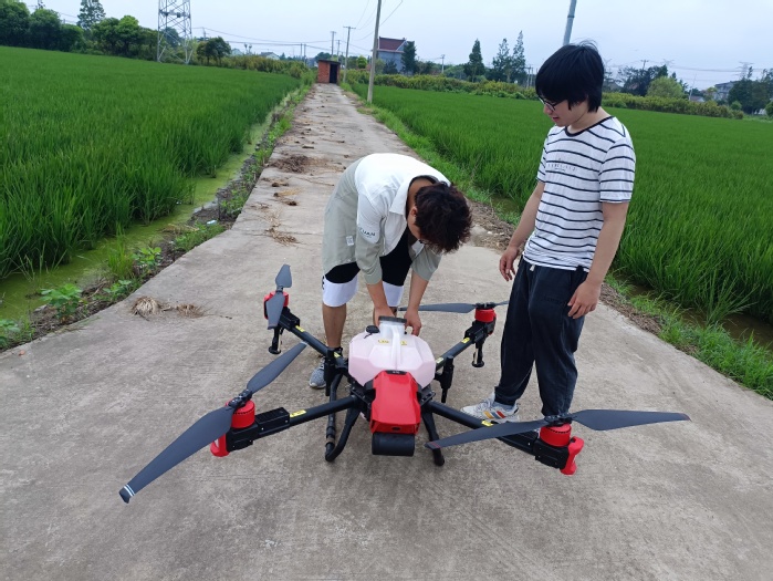 早在今年5月份,学院师生已在奉贤区四团镇五四村开展了助农调研活动,由于农田数量较多,在水稻的种植过程中,最大的痛点和难点在于解决劳动力的问题,尤其是在喷洒农药这一方面,由于村中人口结构年龄偏大、无法实施机械化操作、天气炎热等原因,成为了农户们心中最急难愁盼的现实问题。