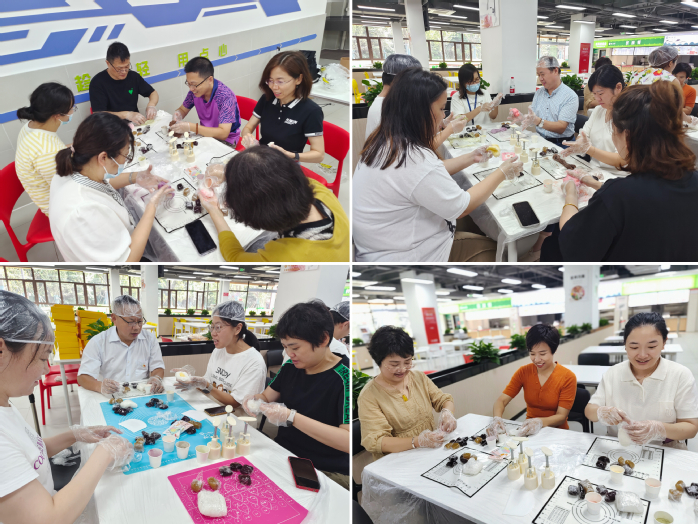 活动现场,烘焙老师向大家介绍月饼和蛋糕的种类和制作流程,并演示如何制作冰皮月饼。教师们按照制作流程揉搓糯米团,包裹馅料、上模具,每一道程序都忙得不亦乐乎。掌声、欢笑声此起彼伏,现场成了一片欢乐的海洋。