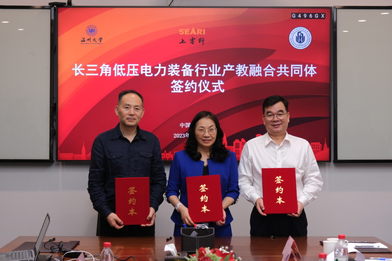 10月15日,长三角低压电力装备行业产教融合共同体签约仪式在上海电器科学研究所(集团)有限公司举行。教育部电力行业指导委员会常务副主任、全国电力教育协会常务副会长张慧翔、教育部电力行业指导委员会副主任、全国电力教育协会秘书长白俊文、温州大学副校长徐和昆、上海电子信息职业技术学院校长赵坚、中德工程学院院长王向红、上海电器科学研究所(集团)有限公司副总裁郑军奇、上海电器科学研究院电器分院常务副院长辛皓天受邀参加,温州大学代表、企业代表、学校科研处及中德工程学院教师一同参会。签约仪式由上海电器科学研究所(集团)有限公司添唯教育总经理张蕾主持。