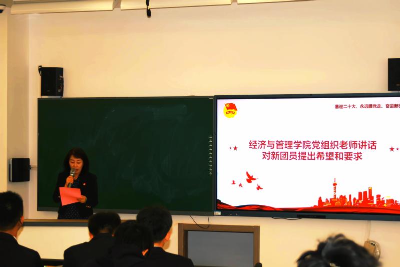聚青年众志,汇青春力量。为全面贯彻习近平总书记重要讲话精神,认真落实新时代全面从严治团的要求,10月17日,经济与管理学院和中德工程学院在金山校区启智楼111举行了庄严的入团仪式,经济与管理学院党总支副书记、副院长宋慧涛老师和中德工程学院党总支副书记、副院长施云美老师以及老团员代表、新团员参加了入团仪式。