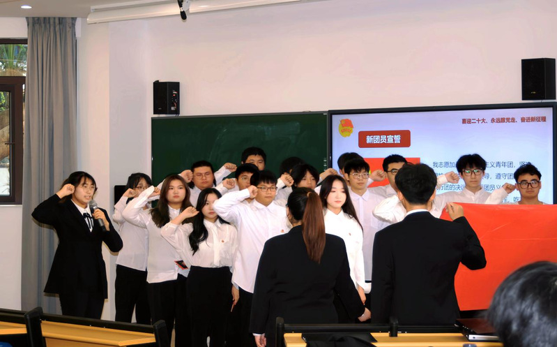 面对鲜艳的中国共产主义青年团团旗,新团员们庄严地许下誓言。两个学院党组织老师向新团员提出了殷切期盼,希望他们能谨记校训,永远记住自己举起右手庄严宣誓的誓词,在学生群体中起到模范带头作用,为团旗增辉,为团旗增色,肩负起历史使命,做一名新时代的优秀大学生。