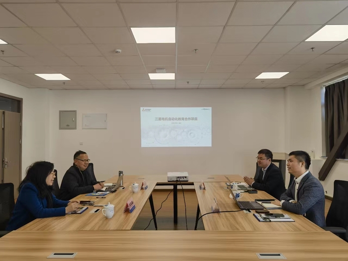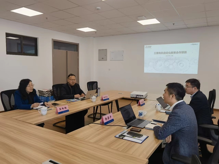 杨弟平主任详细介绍了三菱电机发展现状、三菱电机自动化教育合作项目、校企合作成绩和公司未来在该领域的发展规划,王院长介绍了中德工程学院的基本情况,双方围绕如何结合学院特色,采用最先进且可实施的技术共同开展合作项目进行了讨论。