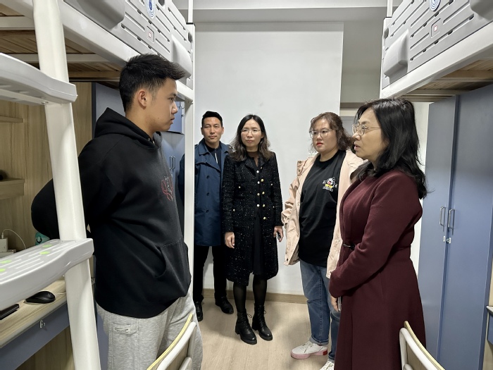 学海无涯,寝室为家。为扎实推进文明校园建设,更好地落实校区保安全、保稳定的工作要求,优化育人环境,让思政育人力量常态化进驻园区、下沉宿舍,落实到学生日常管理和服务的各个环节,2023年11月21日中午,中德工程学院党政领导带领专任教师、辅导员开展查寝工作。
