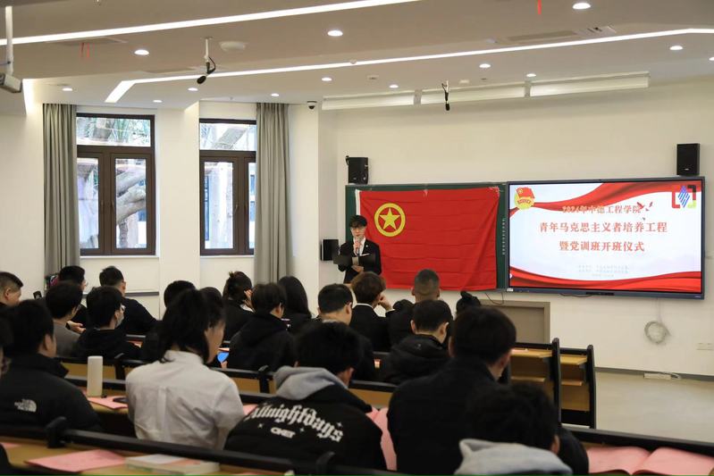 为深入学习贯彻党的二十大精神,进一步增强团组织的凝聚力,中德工程学院团总支在党总支的领导下,按照“党建带团建,团建促党建”的工作思路,着力提高团学骨干的思想政治素养、政策理论水平,促使青年增强“四个意识”,坚定“四个自信”,做到“两个维护”,更好地成长为中国特色社会主义事业的合格建设者和可靠接班人。2024年3月18日,中德工程学院团总支在JS111举办了青年马克思主义者培养工程暨党训班(以下简称青马)开班仪式,中德工程学院党总支副书记孟秋静、党员教师代表、全体参训学员等90余人与会。