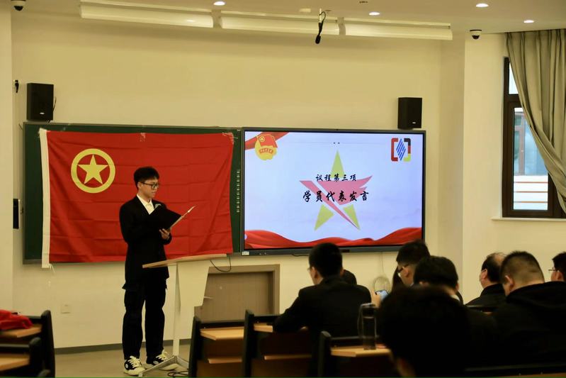 本次开班仪式在雄壮的国歌中拉开帷幕。学院党总支副书记孟秋静作了开班动员讲话,他先对学员们表达祝贺并提出四点要求:一是要珍惜这次学习机会,认真学习;二是要做马克思主义的坚实拥护者、践行者,经得住组织的考验,经得住同学们的监督;三是要充分发挥团员的先锋模范带头作用;四是要立场坚定,旗帜分明。他勉励学员树立政治坚定、作风过硬、素质全面的优良形象,怀揣梦想,踔厉奋发,创造无愧于时代、无愧于人民、无愧于历史的青春华章。随后,程伟鸿同学作为学员代表表态发言,号召广大青年要坚定不移听党话、跟党走,怀抱梦想又脚踏实地,敢想敢为又善作善成,立志做有理想、敢担当、能吃苦、肯奋斗的新时代好青年。最后,徐济陆老师授予学员代表上海电子信息职业技术学院中德工程学院2024年青马工程旗帜。