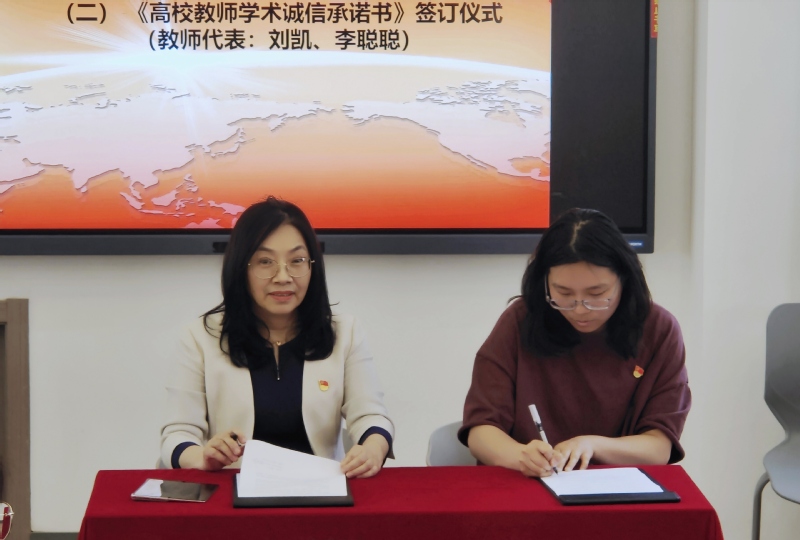 刘凯、李聪聪老师作为教师代表签署《高校教师学术诚信承诺书》。