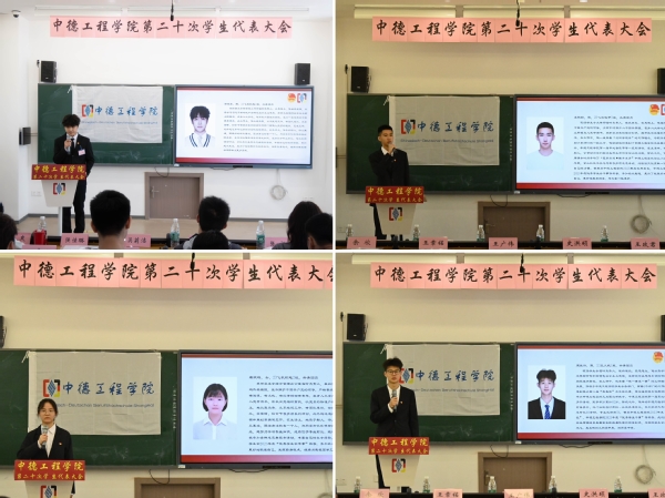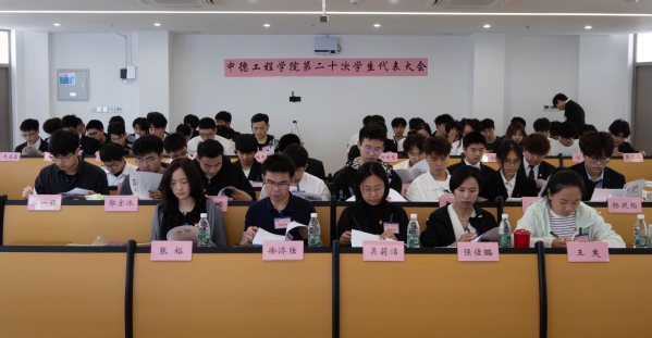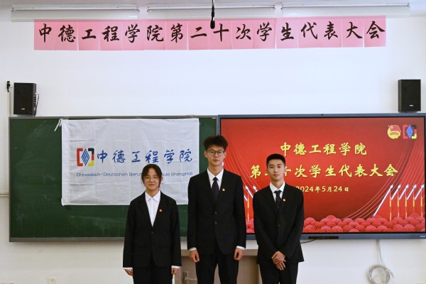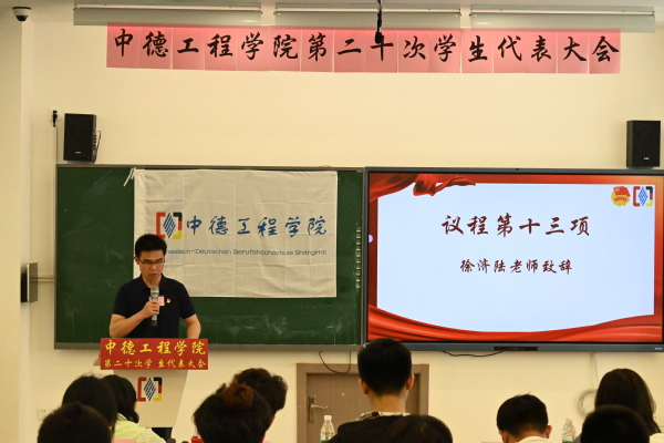 紧跟党走,踔厉奋发,凝心聚力,喜迎盛会。为深入学习和贯彻党的二十大精神,回顾和总结我院过去一年的学生工作,积极引领全院青年学生以主人翁姿态参与学院各项工作。2024年5月24日,在金山校区JS111隆重召开了中德工程学院第二十次学生代表大会。中德工程学院副院长吴莉洁老师、党总支专职组织员徐济陆老师、团总支临时负责人张裕老师,各辅导员及中德工程学院的95名学生代表齐聚一堂。