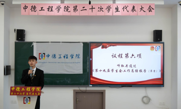 大会审议通过了《中德工程学院第二十次学生代表大会表决办法[草案]》,表决通过《中德工程学院第二十次学生代表大会正式代表资格审查报告[草案]》,听取《中德工程学院第二十次学生代表大会筹备工作报告》《中德工程学院第二十次学生代表大会提案工作报告》《学生常任代表委员会委员选举说明》《学生会主席团选举说明》,听取并通过《中德工程学院第十九届学生会工作总结报告[草案]》,表决通过《中德工程学院第二十次学生代表大会选举办法[草案]》《总监票人、监票人、计票人、唱票人名单[草案]》。为本次学代会顺利召开奠定了基础。