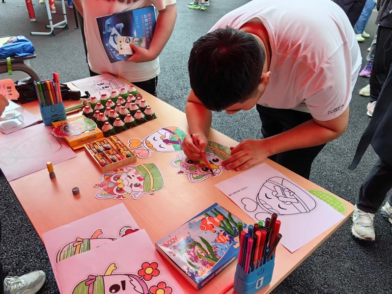 活动伊始,同学们在活动签到处领取“游园卡”,按照“游园卡”路线兴奋雀跃地开启了今天的闯关之旅。“箭射五毒”活动寓意着辟邪除秽,同学们铆足力气,定睛瞄射墙上印有“五毒”的图片,迎接好运连连。与此同时,还有同学通过背诵爱国诗人屈原诗作中的名句获得鸡蛋包装壳,用颜料在包装壳上渲染出一条条栩栩如生的“龙舟”。另一旁,传统游戏端午投壶、垂钓粽子活动也在如火如荼进行着,“粽”享好运——趣味套圈活动当之无愧成为最受同学们喜欢的一项端午节活动。本次游园会精心安排的五个互动区域,充分体现文化性、教育性、趣味性,带领同学们穿越历史沉浸式体验民俗之美,深受同学们喜爱。