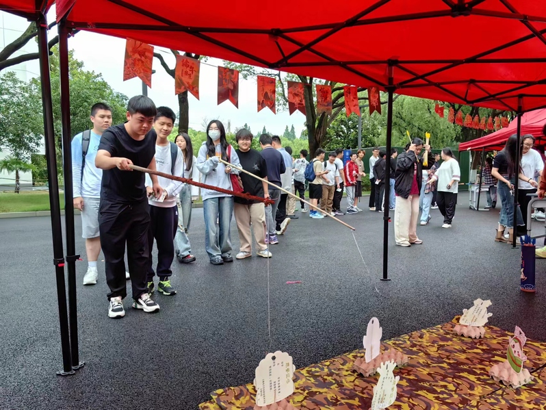 “粽子飘香,古风流长”,又到了一年一度的端午佳节。为弘扬端午传统文化,凝聚爱国奋斗力量,传承中华民族精神血脉,丰富校园精神文化生活,中德工程学院(以下简称我院)于2024年6月6日在金山校区力行楼前举行“端午临初夏,青蝉鸣长时”端午游园活动。