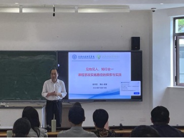 2024年10月18日,上海电子信息职业技术学院金山校区迎来了一场别开生面的讲座,主题为“见物见人,知行合一——课程思政实施路径的探索与实践”,特邀上海城建职业学院建筑与环境艺术学院院长高守雷教授授课,我校中德工程学院、经济管理学院及其他教学单位的教师共同参与。