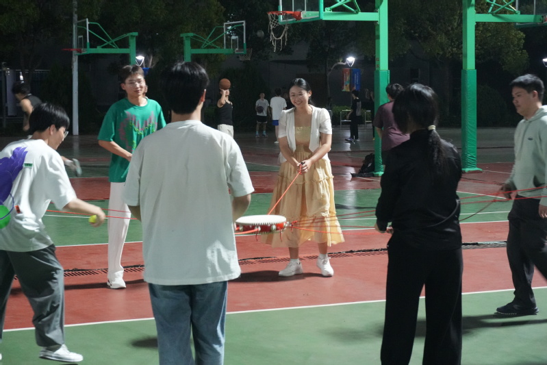 该游戏需要二至三大组同步比赛,成员们手握同心鼓牵引线,同学们“心往一处想、劲往一处使”,齐心协力为自己的团队争取胜利,这不仅增强了团队凝聚力,更展现了学生会成员的拼搏精神。
