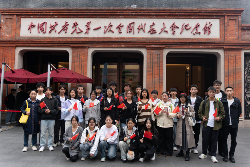 在学生党支部书记张晶老师和朱晓君老师的带领下,同学们抵达中共一大会址,在这座见证了中国共产党伟大诞生的石库门建筑中,同学们在专业讲解员的引导下依次参观了各个展厅。一大会址古朴的建筑,如同一座穿越时空的桥梁,珍贵的历史照片,生动的场景再现,珍贵的文物展品,将我们带回那个波澜壮阔、充满希望的历史时期。每一块青砖、每一扇木门,都承载着革命先烈们不屈不挠、追求真理的光辉历程。同学们在参观中或驻足沉思,或低声交流,表现出对历史的深深敬意和对革命精神的无限敬仰。