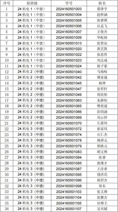 按照《中德工程学院24级兰大班组班方案》要求,中德工程学院根据学生2024-2025第一学期部分课程考试成绩及个人意愿,完成了兰大班的组班任务,24机电3(中德)为兰大班。现将进入兰大班学员名单公示如下: