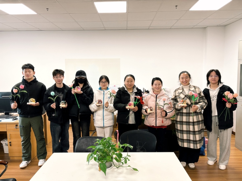 “每一道工序都是对匠心的传承,每一次创作都是情感的倾注。”参与活动的张同学轻抚作品说道。现场制作的百余件手工艺品,由学生代表赠予全院女教师,绒花的坚韧典雅映照着师者风骨,永生花的永恒之美寓意教育事业的生生不息。