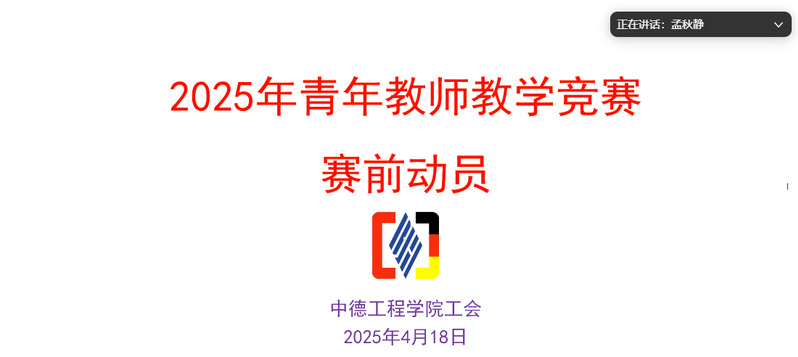 2025年4月18日,中德工程学院召开2025年青年教师教学竞赛赛前动员会,全面启动备赛工作。会议由学院党总支副书记孟秋静主持,党总支副书记、副院长施云美、副院长吴莉洁及学院40岁以下青年教师参加。