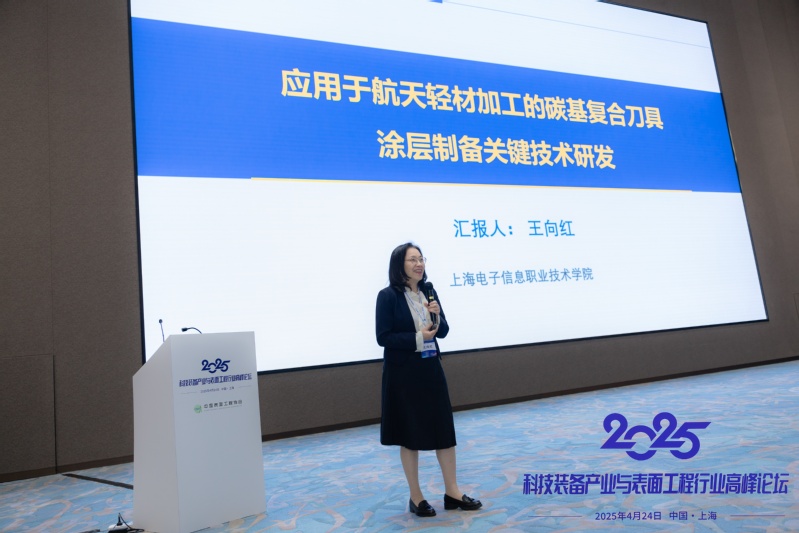 高峰论坛环节精彩纷呈,邀请了30余位行业顶尖专家学者,围绕表面工程技术创新、绿色制造、智能化转型等议题展开深入探讨。学校科协副主席、机电装备关键部件绿色智造表面处理工程技术研究中心主任王向红教授分享了《应用于航天轻材加工的碳基复合刀具涂层制备关键技术研发》的报告,重点阐述了应用于航天轻材加工的碳基复合刀具涂层制备关键技术研发,开发的Cr/CrN/ta-C复合涂层刀具在CFRP(碳纤维增强聚合物)材料加工中的性能进行评估及企业应用前景。