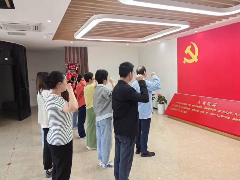 参观结束后,全体党员在党旗前重温入党誓词。铿锵誓言与展馆内斑驳的抗战文物形成时空对话,在每个人的心中构筑起理想信念的立体坐标系。党总支副书记孟秋静老师表示,将红色教育从课堂延伸到徒步实践,就是要让新时代青年在沉浸式体验中厚植家国情怀,把“忠诚干净担当”的要求刻进心里。入党积极分子纷纷表示“我愿以吾辈青年之使命,报祖国庇护之恩情。”