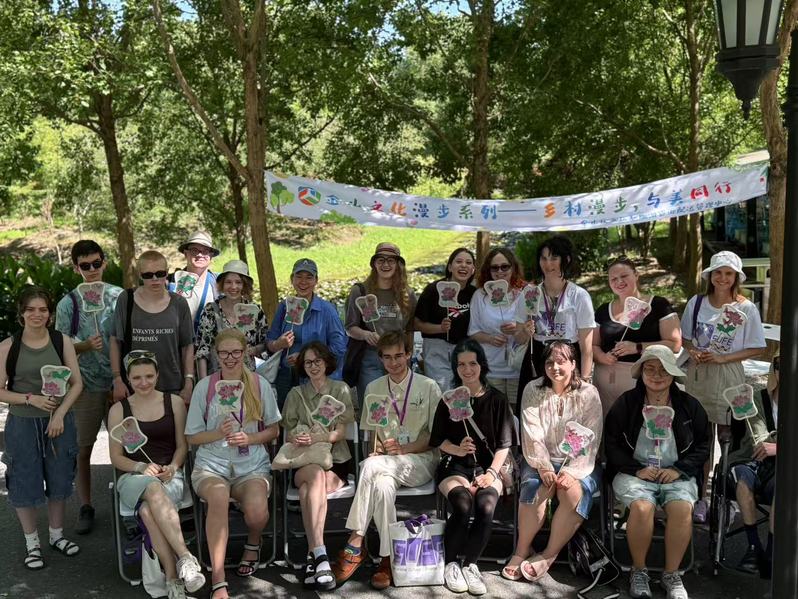 在花开海上生态园,团队迎来了一场特别的“非遗外交”——热情接待爱沙尼亚留学生,共同体验中国传统缠丝扇制作。留学生们精心挑选材料,细致粘贴珍珠、勾勒纹样,在队员们的耐心指导下,一步步完成精美的作品。亲身体验中国工艺的精巧与细腻,留学生们表现出浓厚兴趣,纷纷表示这次“动手之旅”让他们对中国文化有了更深的认识与由衷的喜爱,希望成为传播中华文化的友好使者。