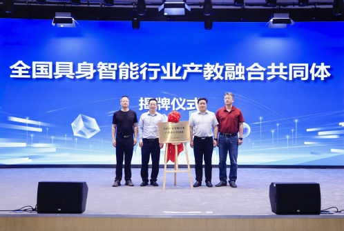 战略合作 共启新程,协同创新 融合共赢。上海电子信息职业技术学院党委副书记、院长赵坚、华东师范大学数据科学与工程学院党委书记王长波、上海市物联网行业协会秘书长潘君才、上海智元新创技术有限公司科研教育部总经理刘牧云共同为“全国具身智能行业产教融合共同体”揭牌。
