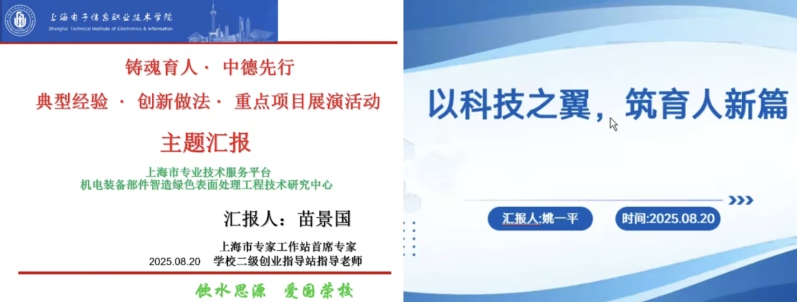 为高站位精准把握新时代立德树人工程的重大战略意义和地位,扎实推进教育强国“一号工程”,深刻领会上海市立德树人机制综合改革试点新要求,推进落实《上海市深化立德树人机制综合改革实施方案(院系层面)》试点工作,推动全体教师将立德树人理念转化为教育教学实践创新,聚焦教师在教育教学中的“典型经验+创新做法”,8月20日,中德工程学院推进“上海市立德树人机制综合改革”重点项目展演活动顺利开展,中德工程学院全体教职工参会。学校党委组织统战部部长沈莉、党委宣传部部长张贯彻、教务处处长兰小云出席展演活动,并担任此次活动的点评嘉宾。