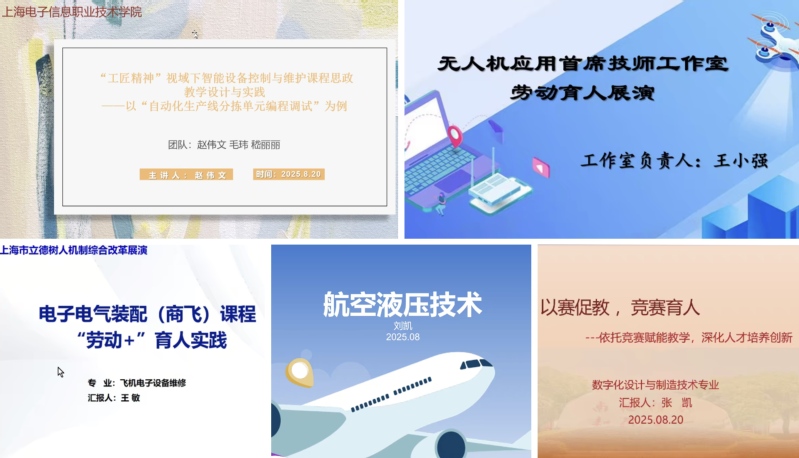 在“劳动+”课程育人模块,赵伟文从项目驱动、课堂实施及效果、工作页编制、课程评价等方面介绍了“工匠精神”视域下智能设备控制与维护课程思政教学设计与实践。王小强以“无人机应用首席技师工作室劳动育人实践”为主题,展示了工作室的建设基础和资源、社会培训以及育人成果。王敏围绕“电子电气装配(商飞)课程‘劳动+’育人实践”,介绍了“劳动+”思维融合的育人路径和“四联协同”劳动育人模式。刘凯基于航空液压技术课程介绍了情景化导入、任务驱动等教学方法,并以液压动力元件为例进行教学设计与实施。张凯围绕“以赛促教,竞赛育人”这一主题,介绍了分层培养体系、师资保障措施、资源支持等三大实践举措。