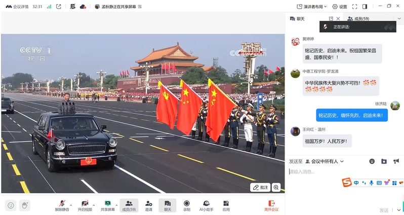 9月3日上午,纪念中国人民抗日战争暨世界反法西斯战争胜利80周年大会在北京天安门广场举行,本次阅兵是全面推进中国式现代化进入新征程的首次阅兵,是人民军队奋进建军百年的崭新亮相。中德工程学院组织全体教职工观看大阅兵同步直播,感受祖国强大,铭记抗战历史。