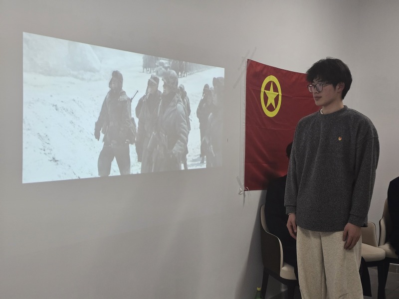 活动伊始,负责人孟泽彬同学以“红色历史与青年使命”为题作开场致辞。他阐述了本次活动的核心意义,强调红色基因是共青团的精神血脉,号召新时代青年从革命历史中汲取力量,将爱国之情、报国之志转化为日常学习与工作的实际行动,为本次活动拉开了庄严而温暖的序幕。